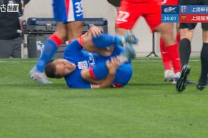 第25分钟,吴曦被卢永涛放倒后痛苦打滚,裁判向卢永涛出示黄牌